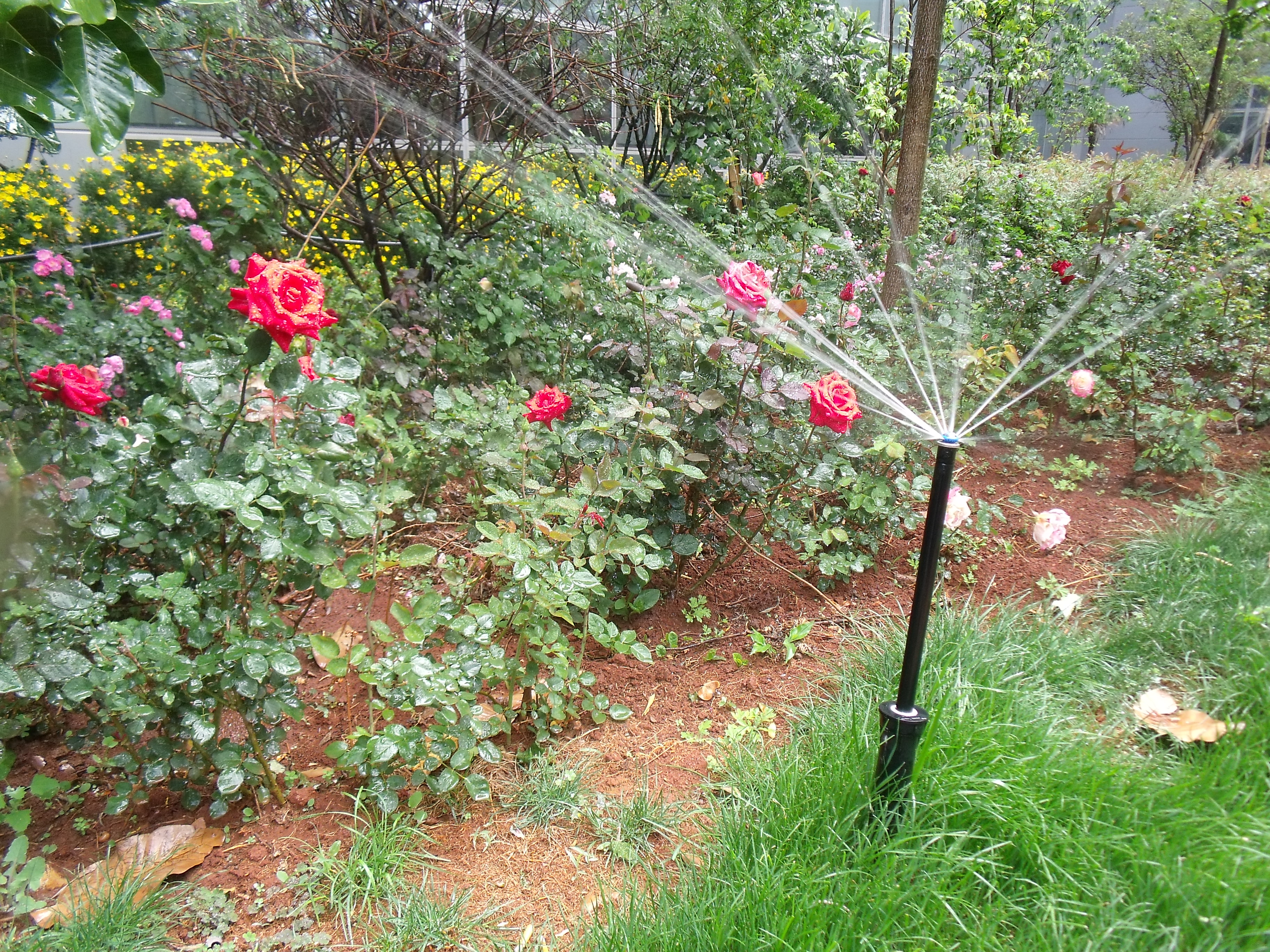 此項(xiàng)目中大面積的區(qū)域使用的是PGP噴頭,邊角地方為地埋的PGP-12噴頭,中間地方是加立桿的PGP-04噴頭;小面積的區(qū)域內(nèi)使用PROS-MP噴頭組合,依然是邊角地方為地埋PROS-12噴頭,中間地方使用PROS-04噴頭。