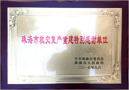 9月,中共珠海市委市人民政府授予綠友集團(tuán)“珠海市救災(zāi)重建特別感謝單位”榮譽(yù)稱號(hào)。