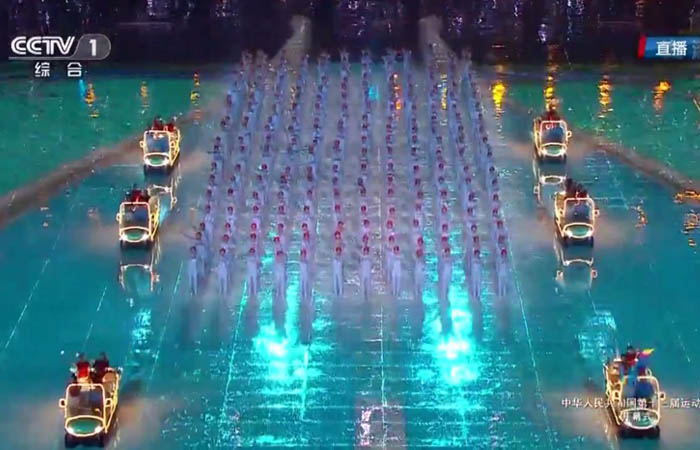 萬人矚目的第十三屆全運(yùn)會(huì)于8月27日晚8點(diǎn)在天津奧林匹克體育中心“水滴”舉辦。本屆全運(yùn)會(huì)開幕式的文藝展演由序幕潮起千帆和分別反映天津迎全運(yùn)、健康中國、迎接未來主題的三幕展演組成。通過強(qiáng)烈吸睛、嘆為觀止的3D效果,再加上表演者的動(dòng)態(tài)有機(jī)結(jié)合,上演了一場(chǎng)聲光電的視覺盛宴。