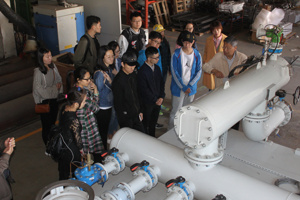 隨后,李總與師生們一起,觀看了草坪綠地灌溉噴灑、造霧系統(tǒng)設(shè)備的現(xiàn)場演示,參觀了產(chǎn)品展廳,了解了泵站的原理性能和生產(chǎn)工序。綠友集團(tuán)派專人為大家作詳細(xì)地講解和介紹。
