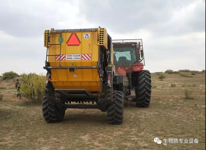 在為期4日的演示過(guò)程中,設(shè)備表現(xiàn)完美,超乎想象。在拖拉機(jī)的牽引下,一行行的檸條被設(shè)備吃進(jìn)肚子,消化一會(huì)便后拉出個(gè)大大的“金粑粑”。