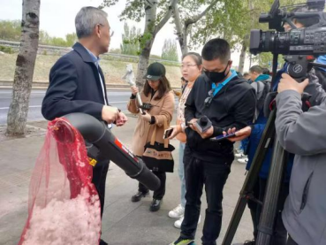 綠友機械集團股份有限公司李敏總裁在北京市園林局、北京市園林科學院等單位舉辦的楊柳飛絮治理新聞發(fā)布會上接受央視、北京電視臺、環(huán)境報、科技日報、新京報等多家媒體采訪,介紹綠友研發(fā)的楊柳飛絮吸絮機,受到廣泛關注與好評。