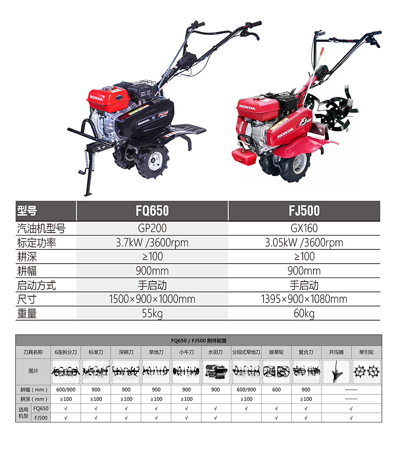 根據(jù)土壤硬度和耕作需要可選擇標準刀、深耕刀、除草輪、復合刀、開溝器、旱地刀等不同刀具。